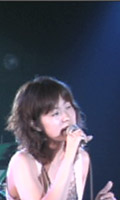 ずっとパーマ禁止だったのが、やっとのことでお許しがでまして(笑)、さっそくヘアスタイルを変えてきました。そー言えば、しばらくライブ活動をお休みして、そしてアーティストネームを本名の横地瞳に変えて久々に望んだライブがちょうど1年前の2004年7月12日、ここハートランドスタジオでした。そのときのヘアスタイルは爆発してましたね(笑)(詳しくはPCのホームページで2004.7.12ライブレポートを)…それからパーマかけちゃダメと言われて1年、伸ばしてるストレートヘアに「うっとうしい…」といつもボヤキ続けて我慢してきましたが…やっとのパーマOKがでました。今日のライブでは新曲「私らしく走って」をバンドで初披露!瞳が作曲する曲は優しいバラードばかりなのですが、この曲は珍しく元気でノリがいい!本人もノッてました。自身が歌ってること、そして皆さんの前でステージに立っている時間をほんとに心から楽しんでいるようでしたよ。